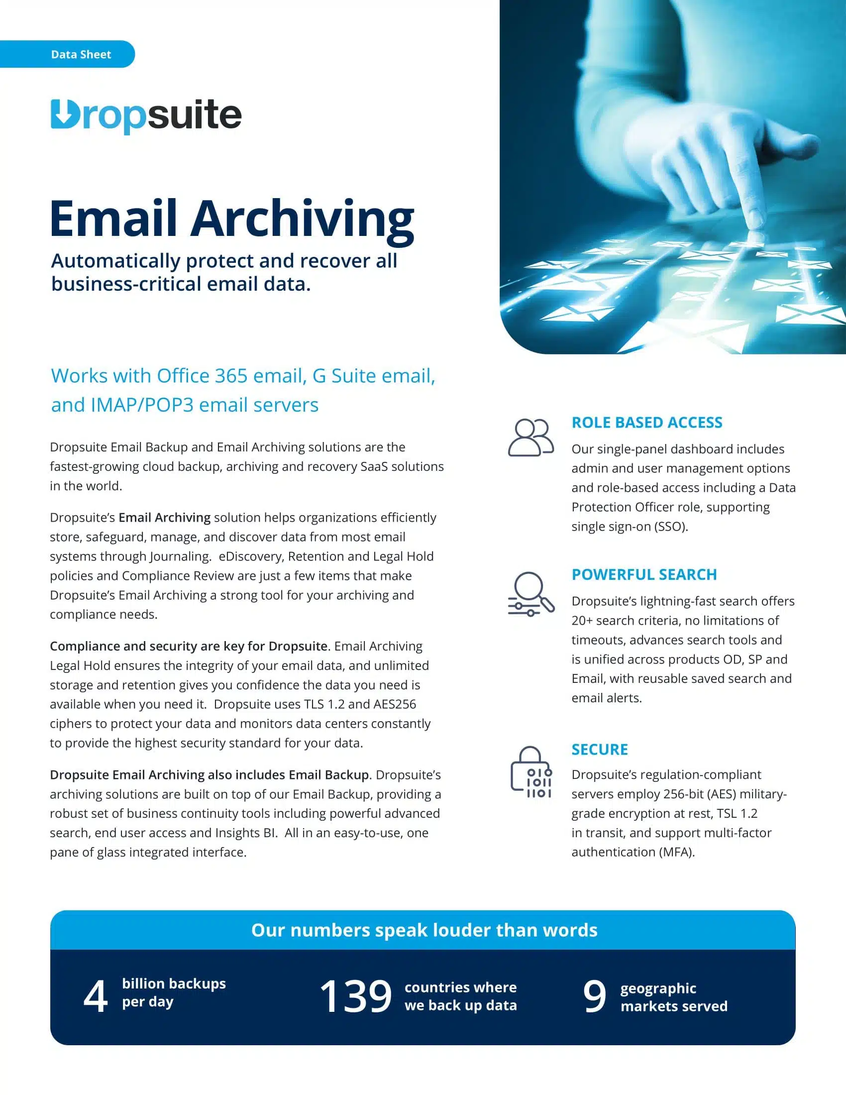 - Military-grade encryptions, archiving, e-discovery and more to help you meet all industry regulations, including GDPR, HIPAA, SOC, etc