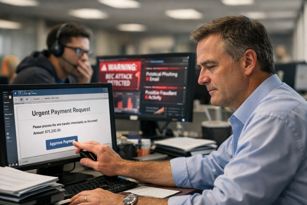 - Train employees on warning signs: urgent wire requests, last-minute changes in bank details, emails from leaders sent while they’re “traveling,” or requests to bypass established procedures.